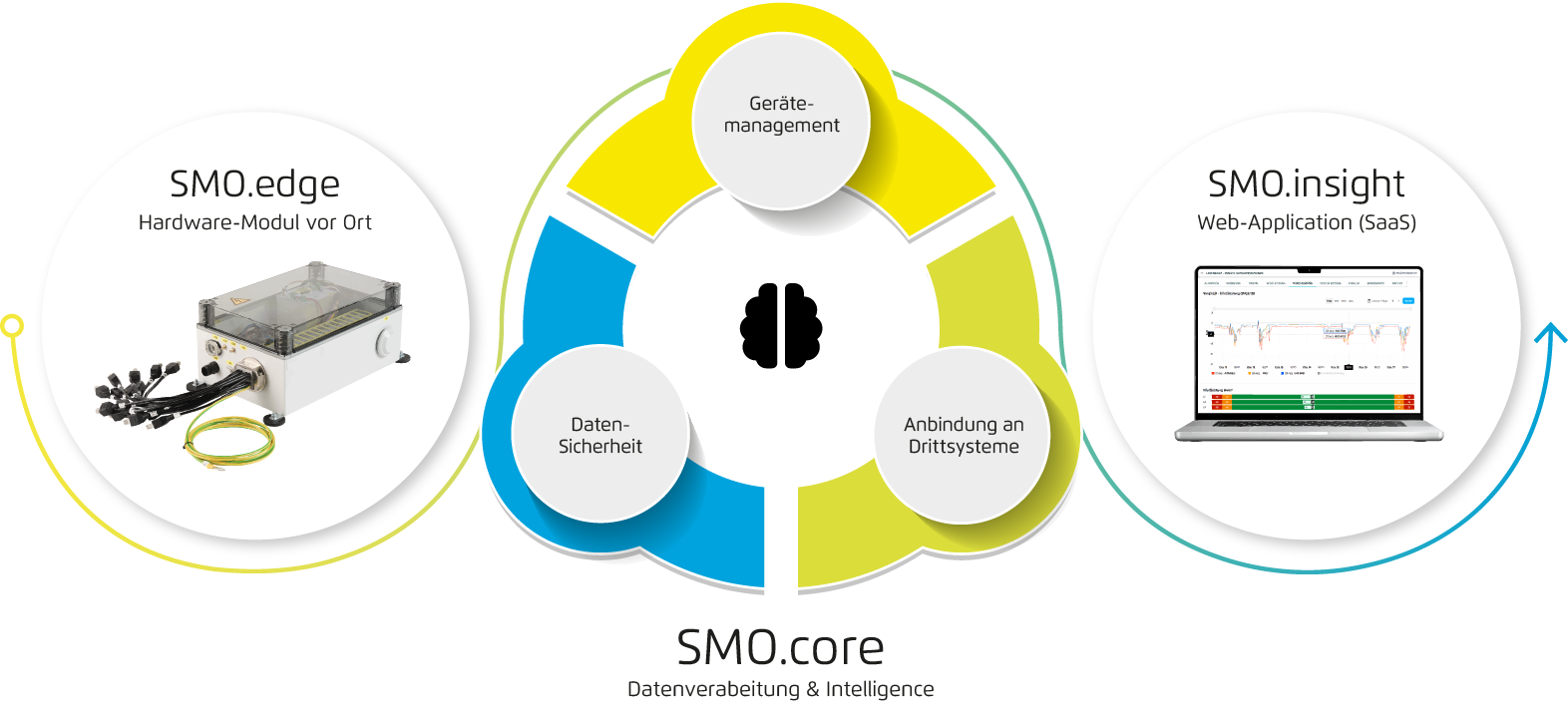 SMO.edge-Geräte werden nicht einfach angeschlossen. Sie werden individuell auf jede Ortsnetzstation abgestimmt, konfiguriert und bei Bedarf angepasst. Updates und Weiterentwicklungen laufen zentral über SMO.core.